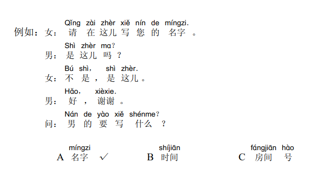 Câu hỏi số 45: 男:(____)里有人吗? 女:请进,先生,你找谁?